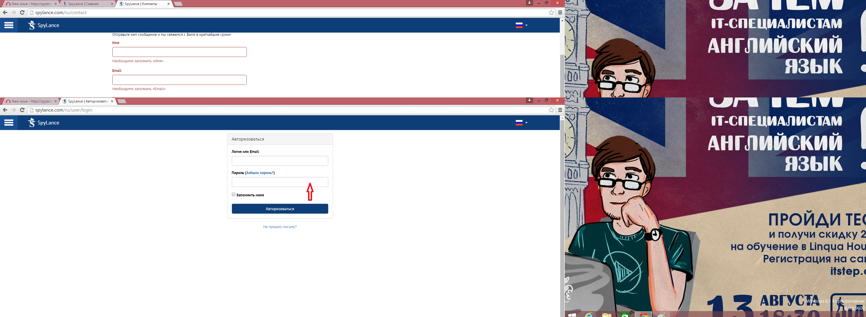 2). Скролим вниз до формы регистрации