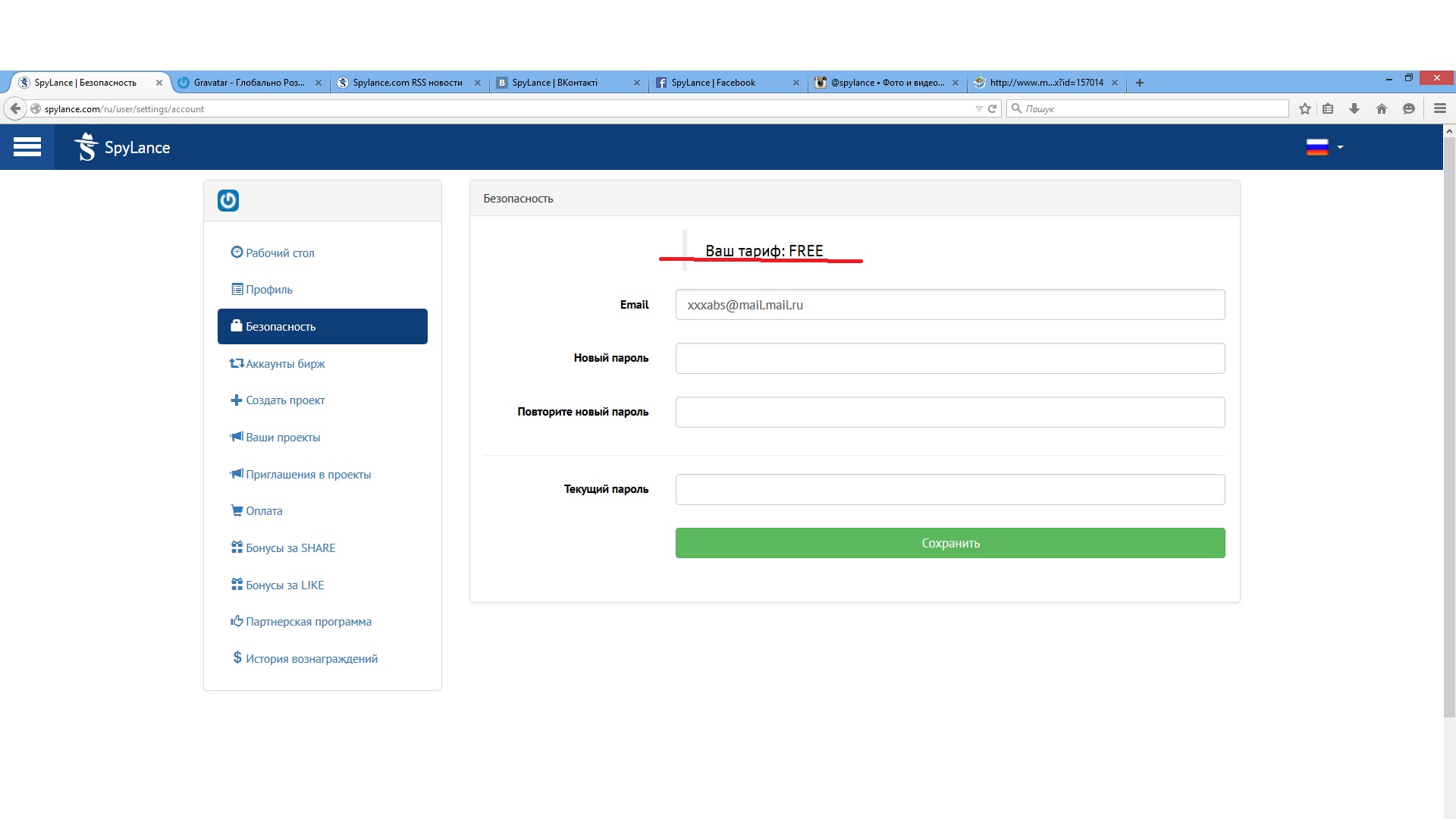 5. Видим "Ваш тариф: FREE"