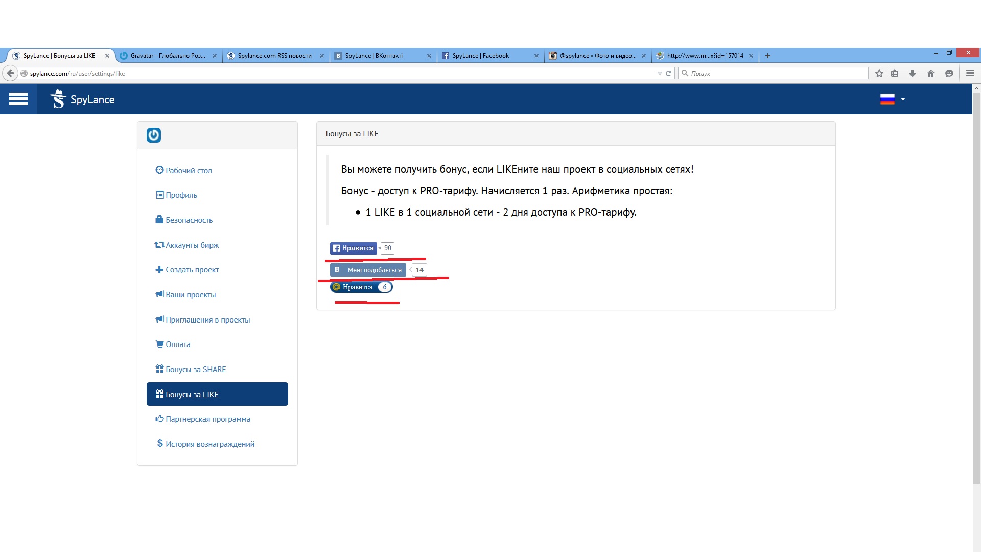 Отсуствует локализация в личном кабинете в разде "Бонусы за LIKE"