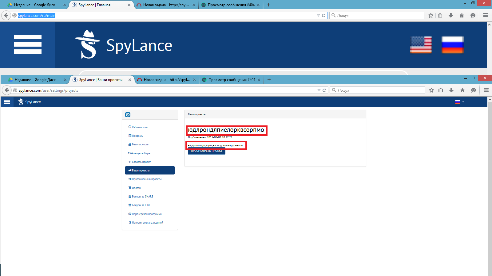 2.Выбрать закладку "Ваш проект"