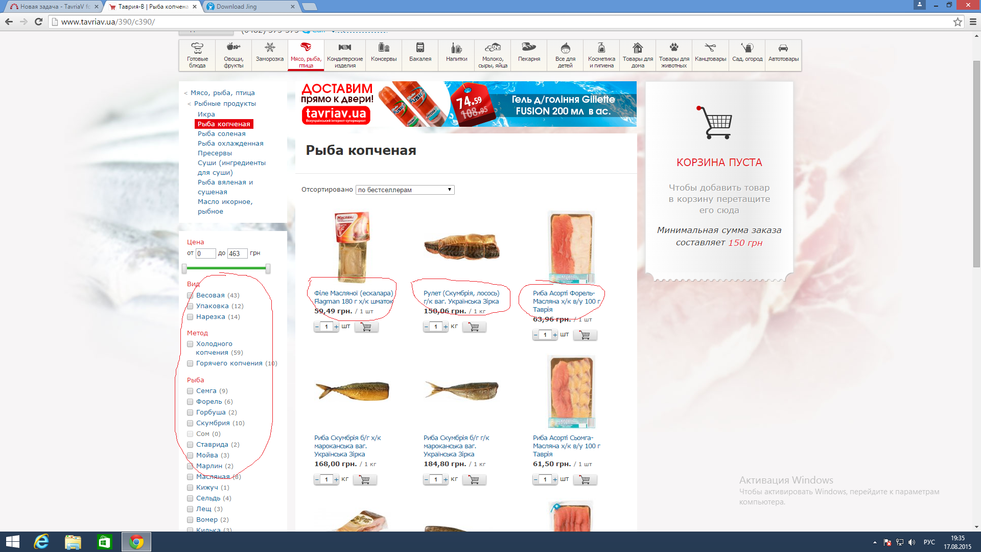 Actual result: сайт полностью на русском языке, а названия товаров на украинском.