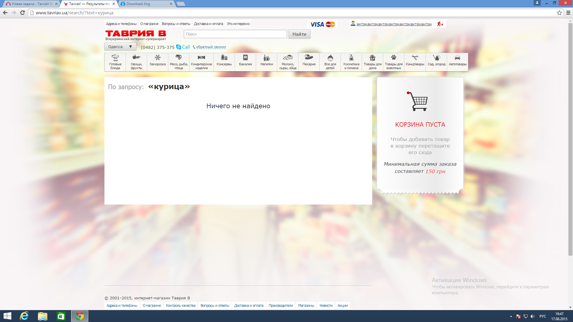 Actual result: товар не находится, потому что все названия товаров на украинском языке.