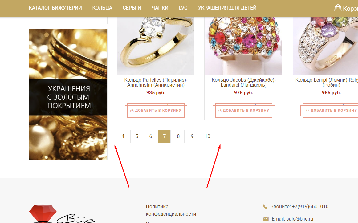 Не отображается первая и последняя страница в зоне навигации для управления разбиением на страницы в разделе "КАТАЛОГ БИЖУТЕРИИ"