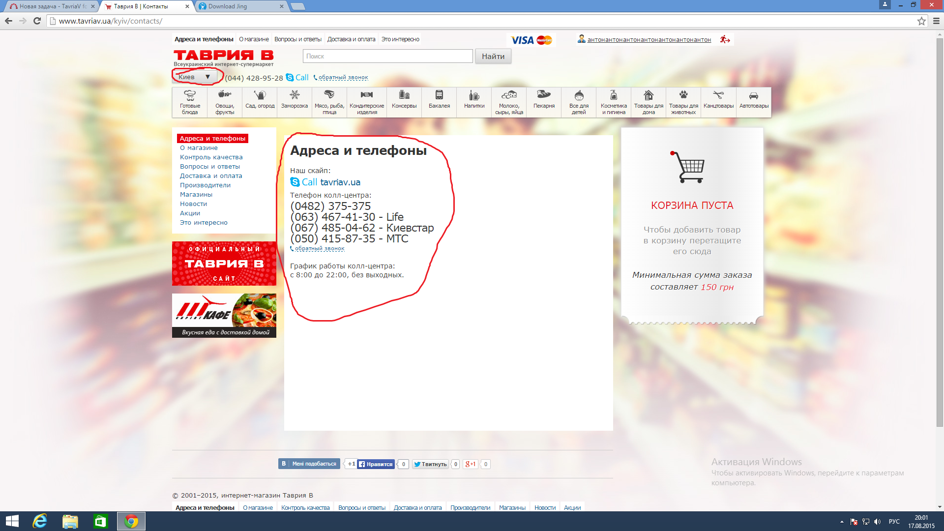 1. Пройти по ссылке в хедере "Адреса и телефоны" http://www.tavriav.ua/kherson/contacts/.