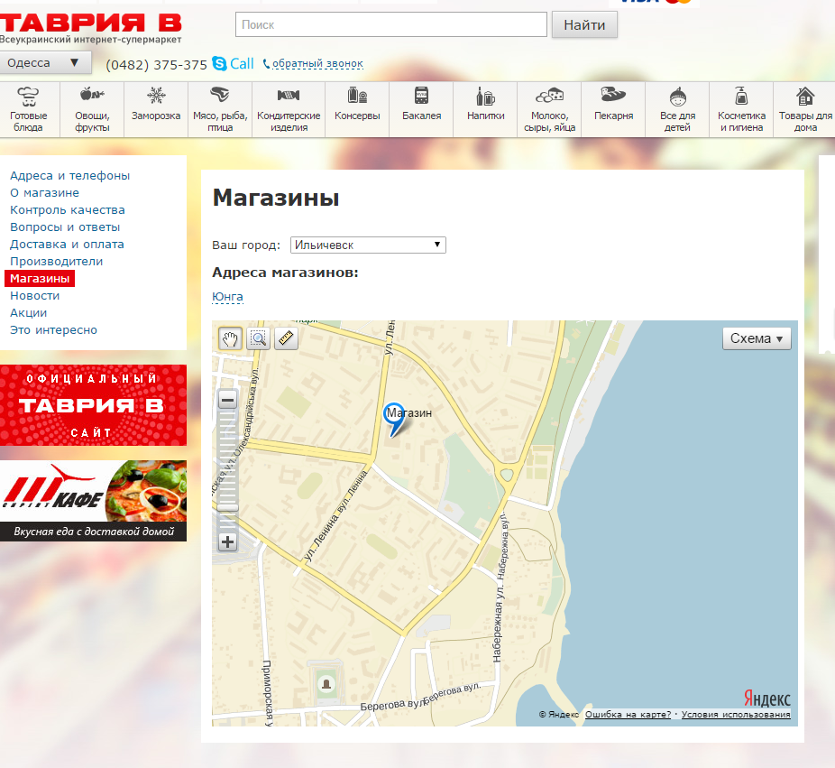 Actual result. В списке магазинов, в городе Ильичевск, присутствует только один магазин.
