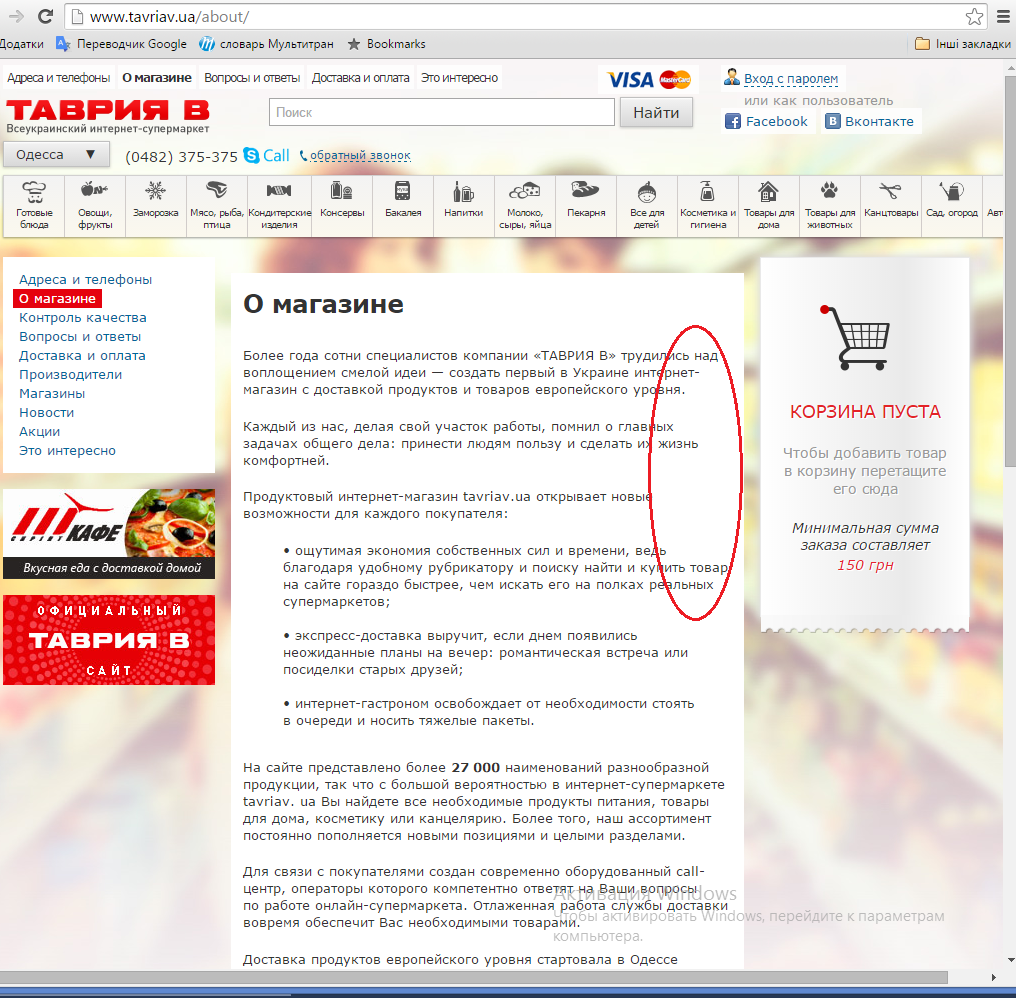 На странице "О магазине" отсутствует форматирование текста по ширине