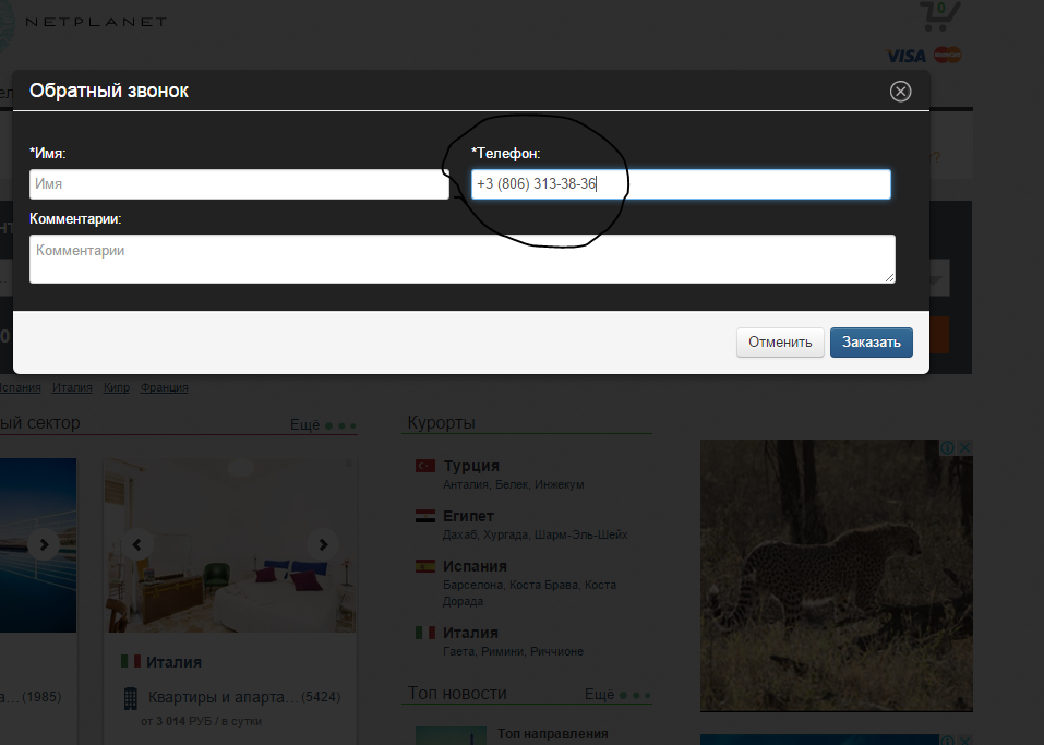 Некорректное количество символов в обратном звонке в ячейке "Телефон"