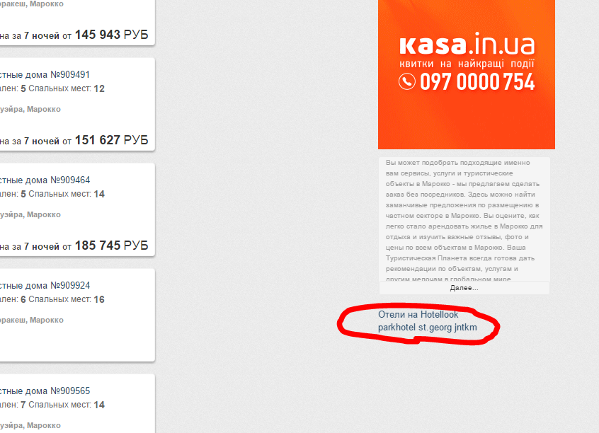 1) Зайти на страницу http://travelnetplanet.com/marokko/catalog/?filter_isSearch=1&filter_geo_search_text=&filter_start_date=15-09-2015&filter_end_date=22-09-2015&filter_beds=10&sort=&country_id=55 (страна Марокко)