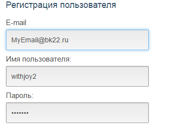 4. Заполнить форму регистрации, указав email-адрес "MyEmail@bk22.ru".
