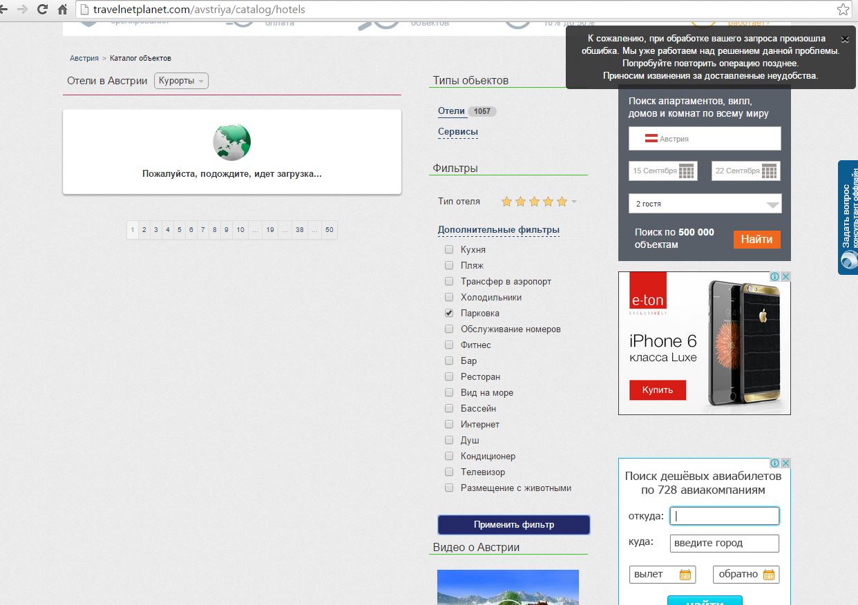 Неработоспособность дополнительных фильтров при поиске Отелей