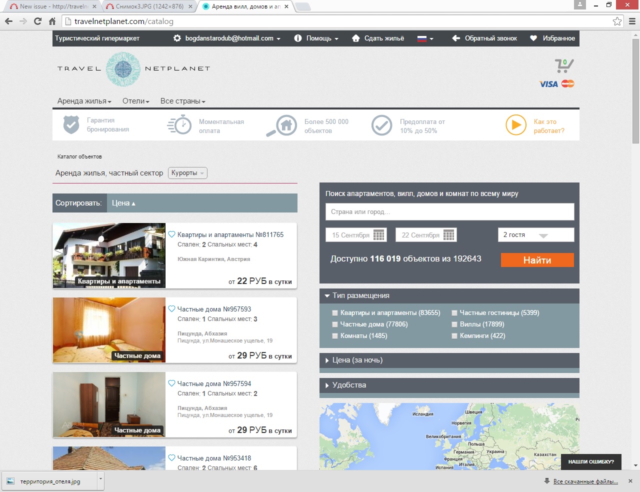 1 Ввести в поле поиска апартаментов страну