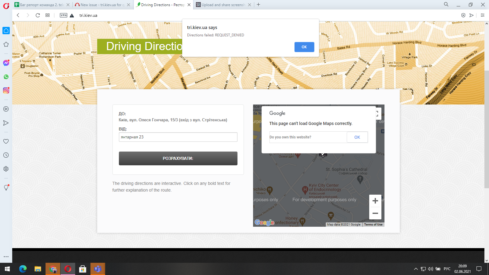 Страница контакты , не поддержвает Google Maps , при попытке проложить маршрут к заведению возникает ошибка "Directions failed: REQUEST_DENIED"