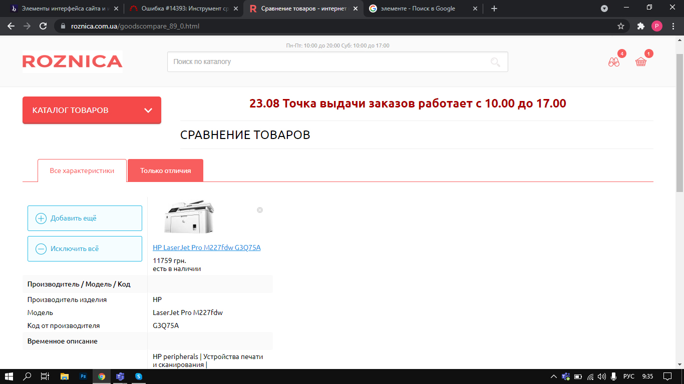 При выборе нескольких товаров и нажатии кнопки "Сравнение" высвечиваются характеристики только 1 товара