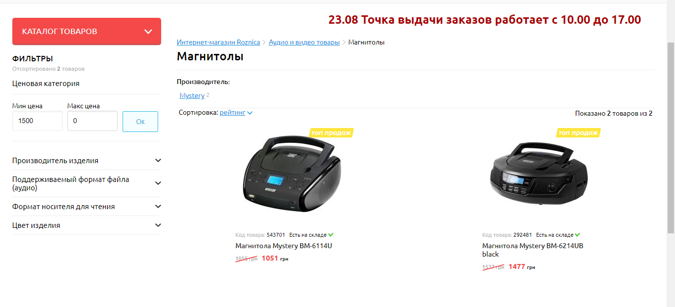 Не срабатывает фильтр "ценовая категория" при указании минимальной цены