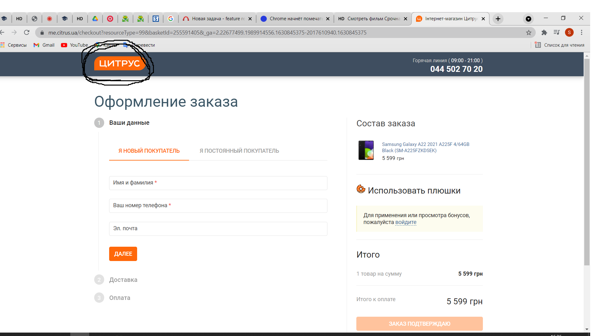 ОР.. пользователь может выйти с меню оформления заказа нажав на логотип