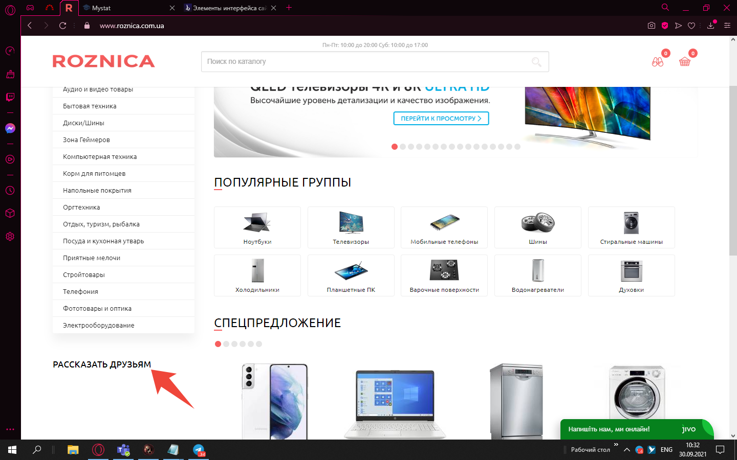 Не открывается раздел с функционалам рассказать друзьям при нажатие кнопки "РАССКАЗАТЬ ДРУЗЬЯМ!"