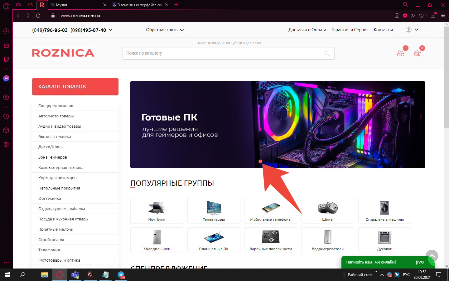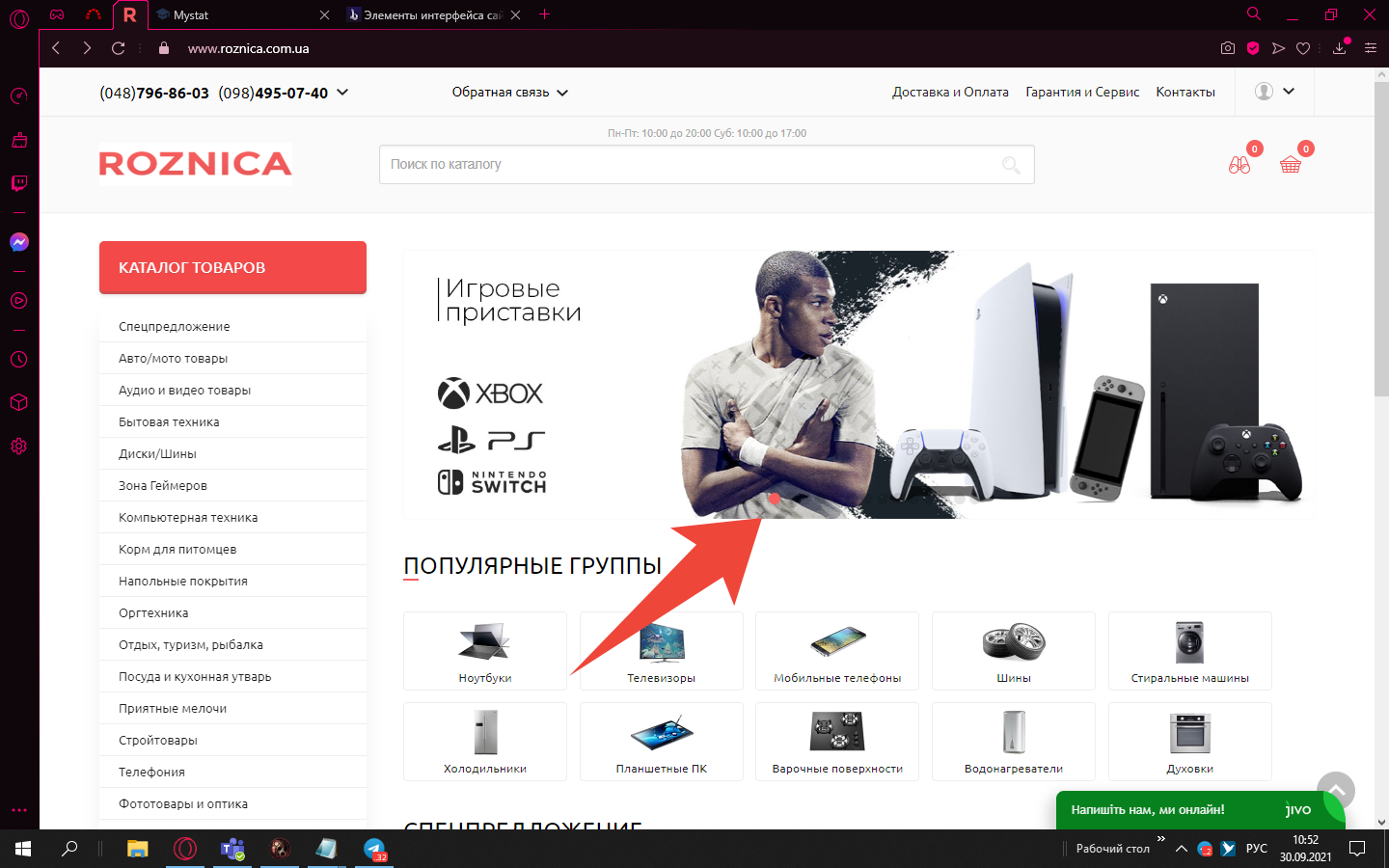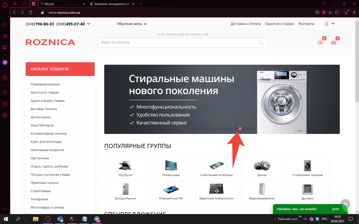 В слайдере на сайте www.roznica.com.ua переключатель сливается на фоне контента