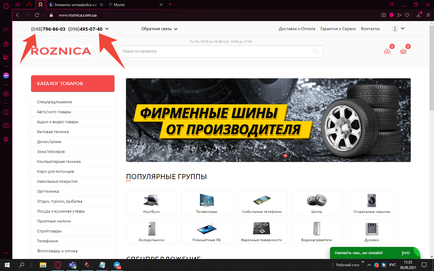 Фактический результат: Отсутствует наименование кнопки с контактами в хедере, указаны номера телефонов.