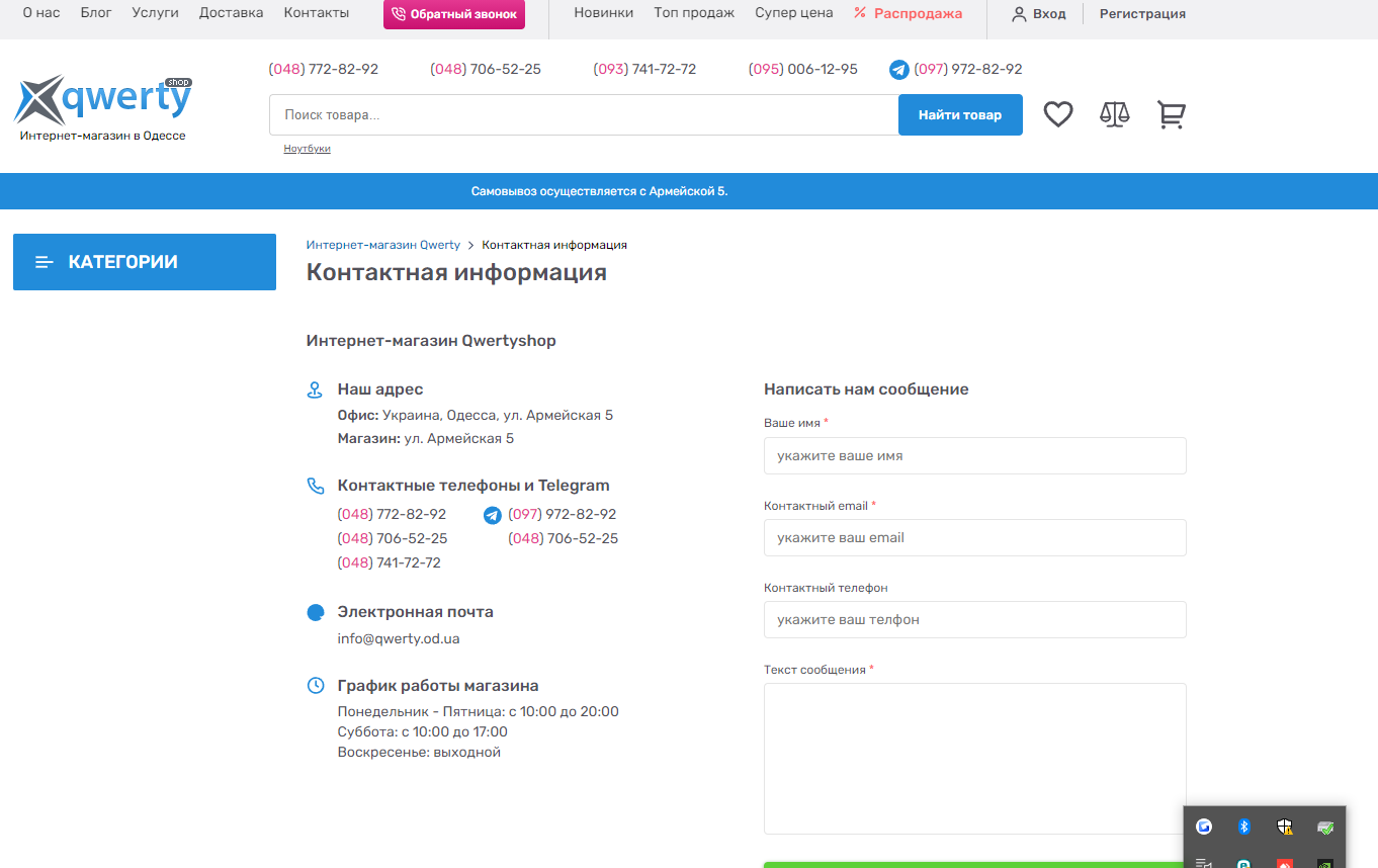 1) Главная страница сайта https://qwertyshop.ua
