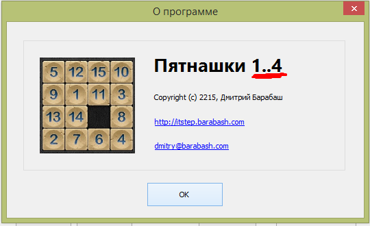 Ожидаемый результат: Отображение версии программы с одной точкой