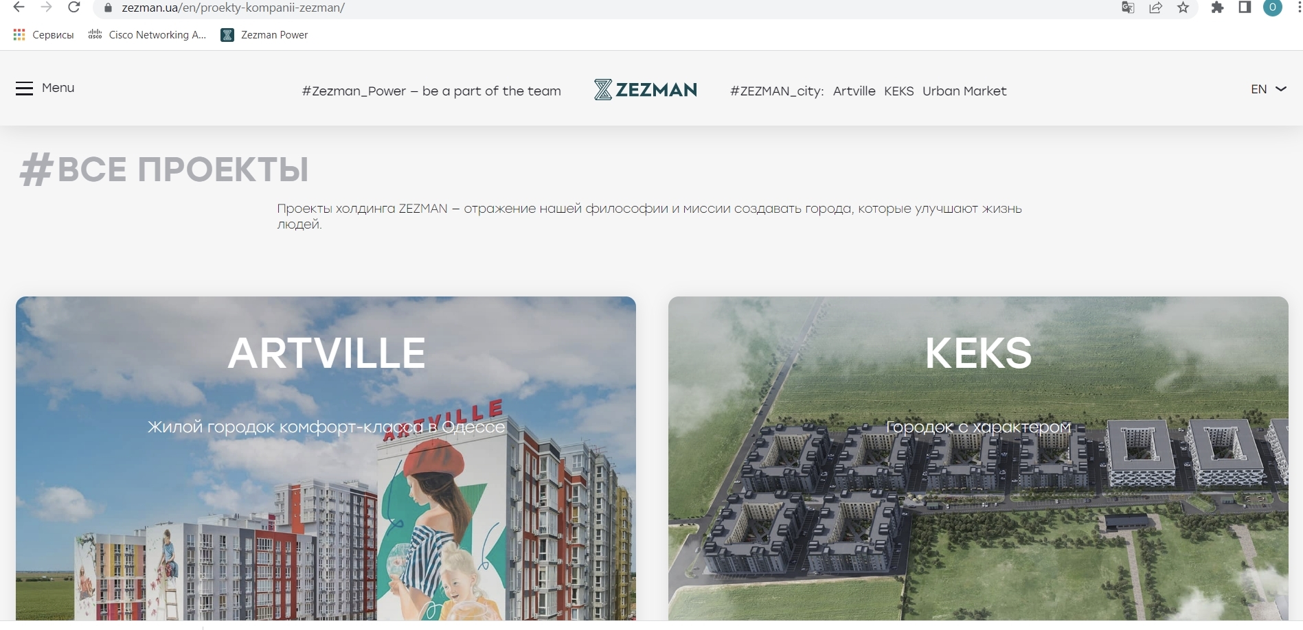 Фактический результат: При выборе англоязычной локализации сайта раздел "View all projects" изложен на русском языке