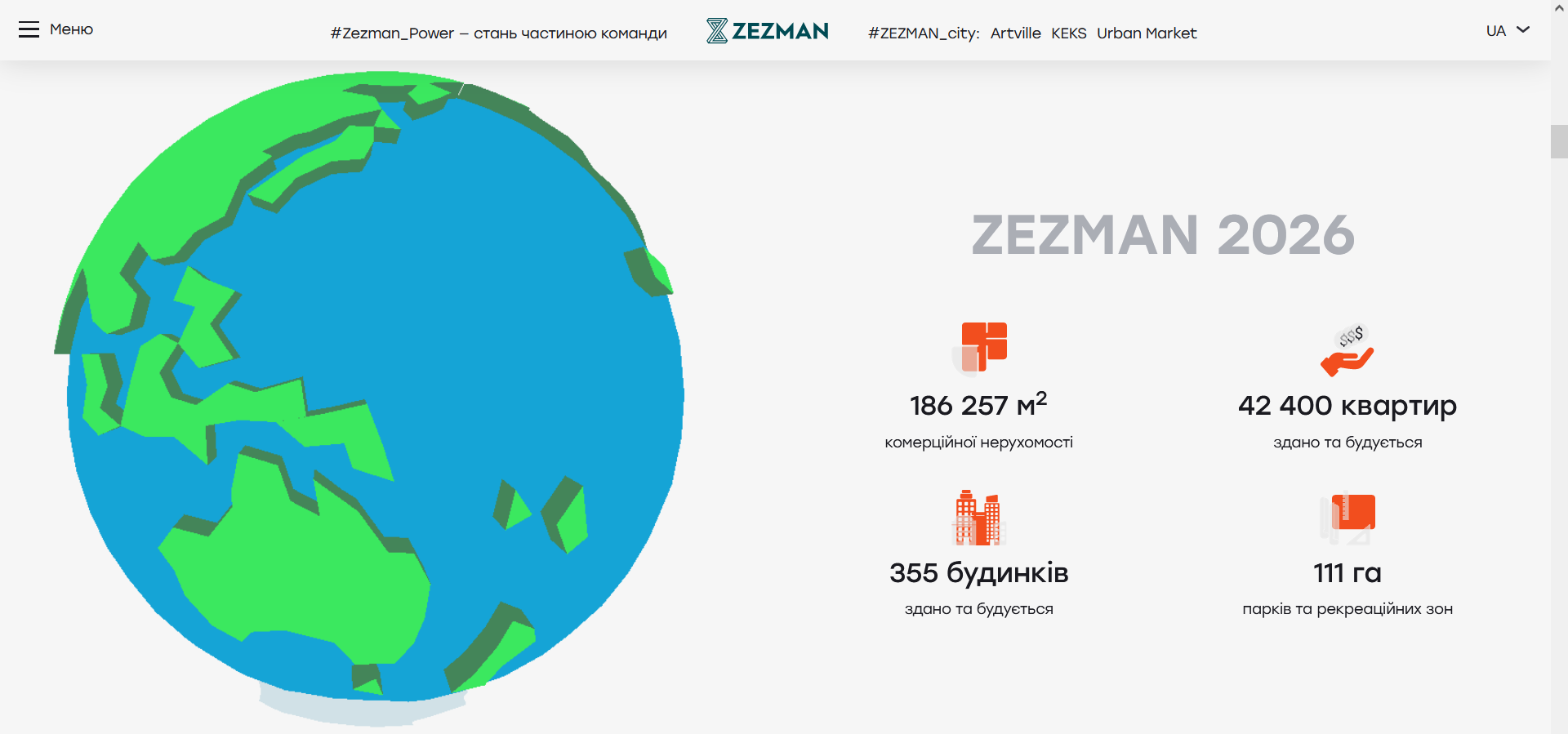 Ожидаемый результат: Графическое воспроизведение планеты Земля одинаковое в английской и украинской локализации сайта