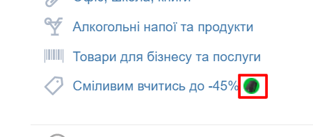 Отсутствует в боковом меню возле кнопки "Сміливість вчитись до- 45%" слева зеленой иконки.