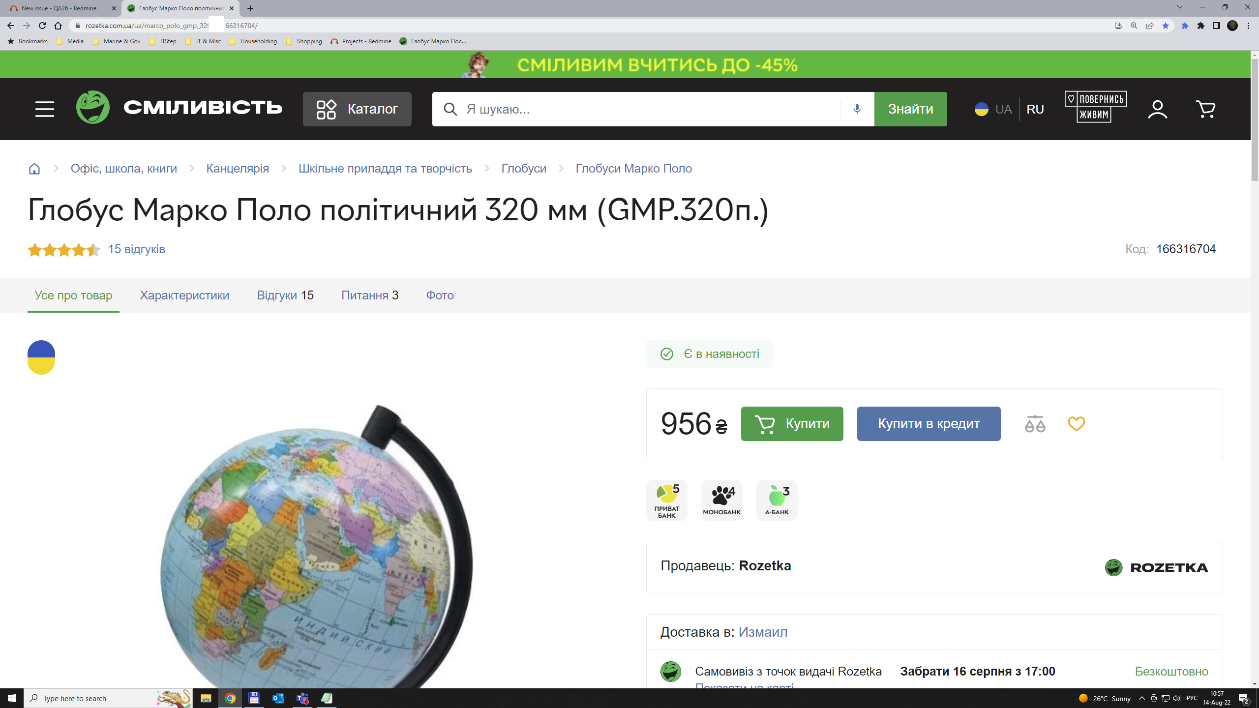 2) Перейти на страницу товара из поисковой строки, код "166316704"