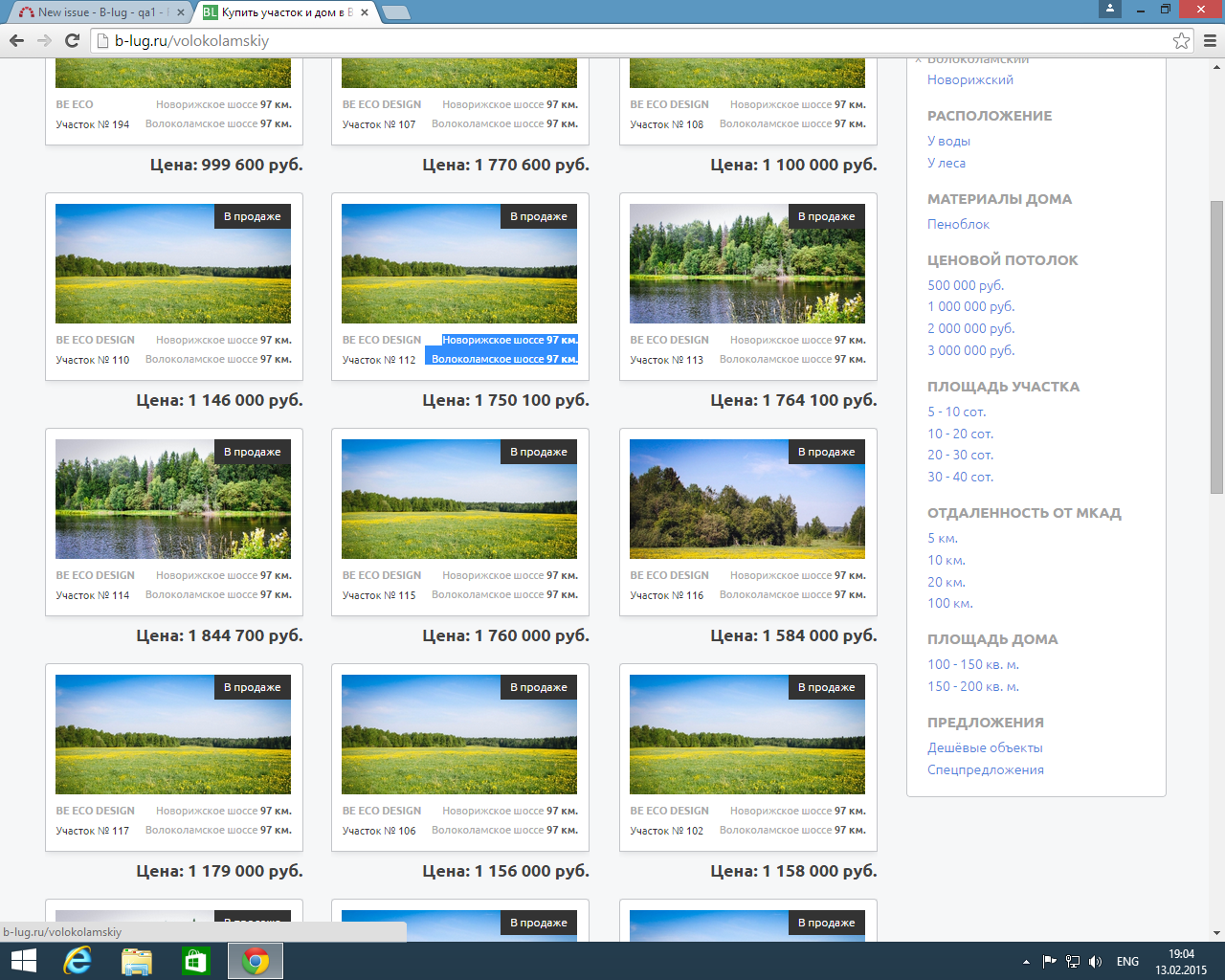 Фактический результат: везде в краткой информации об участках указано: "Новорижское шоссе 97 км", "Волоколамское шоссе 97 км".