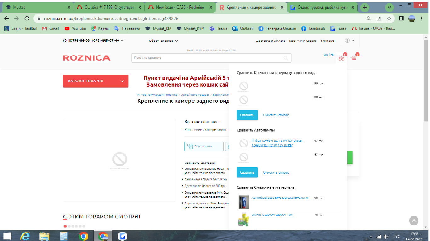 Фактический результат: Отсутствие при многочисленном добавлении товара в закладку "Сравнение" не прокручивается внутри, и не возможно сделать сравнительный анализ