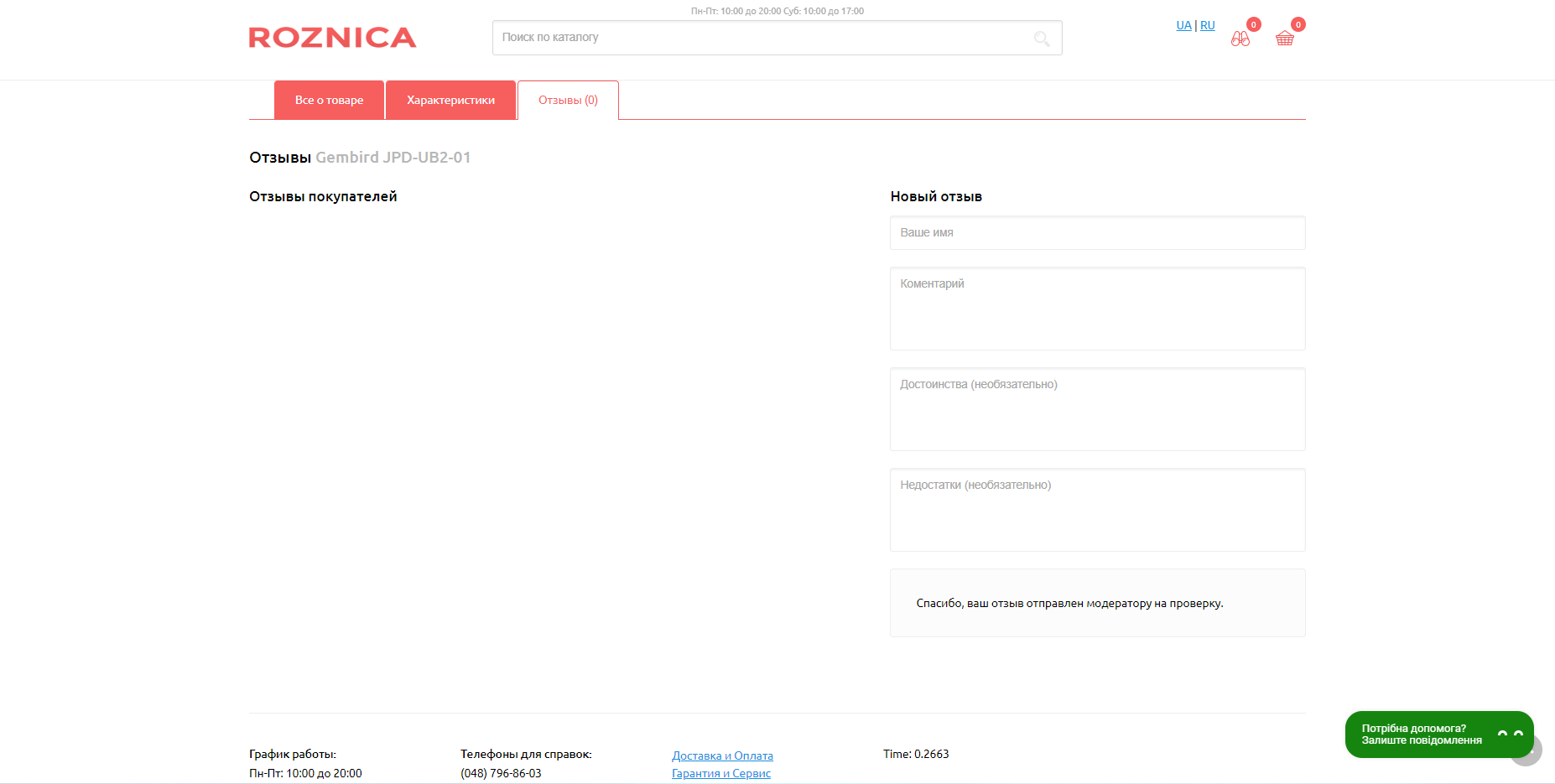 отзыв отправляется при не заполных полях для отзыва