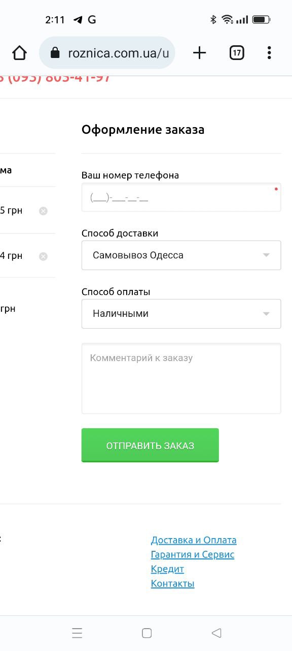 на смартфоне не функционирует "способ доставки" "способ оплаты" в корзине