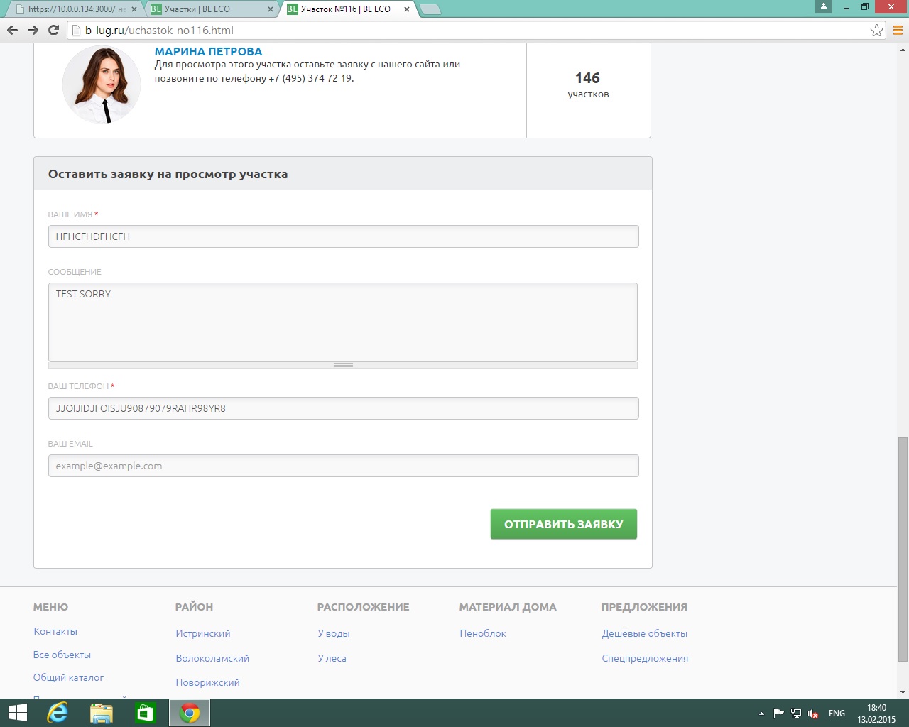 When you choose your area, and want send your request, in field phone number we have bug