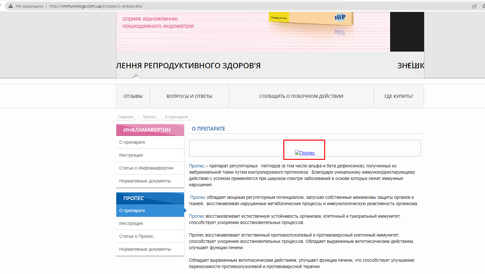 1. Перейти на сторінку опису препарата http://immunologs.com.ua/propes/o-preparate/