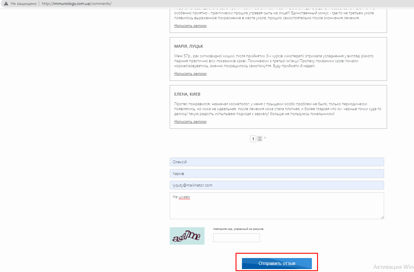 Переходимо на сторінку відгуку http://immunologs.com.ua/comments/