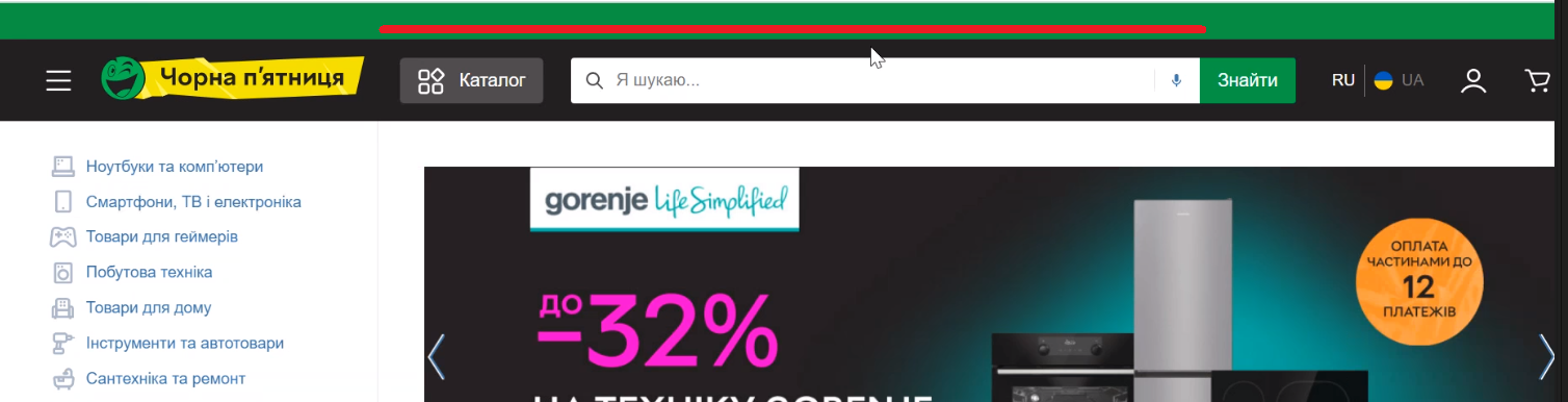 Фактический результат: Отсутствует текст "чорна п'ятниця" в headere.