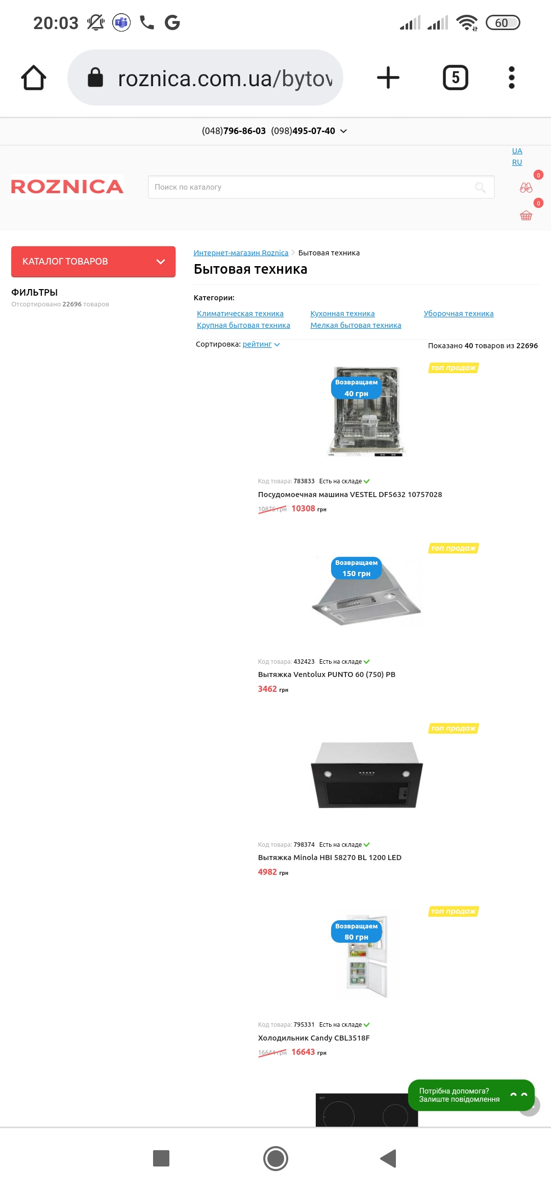 Фактический результат: Ошибка переключения на украинский язык при украинской локализации в категории товаров слева