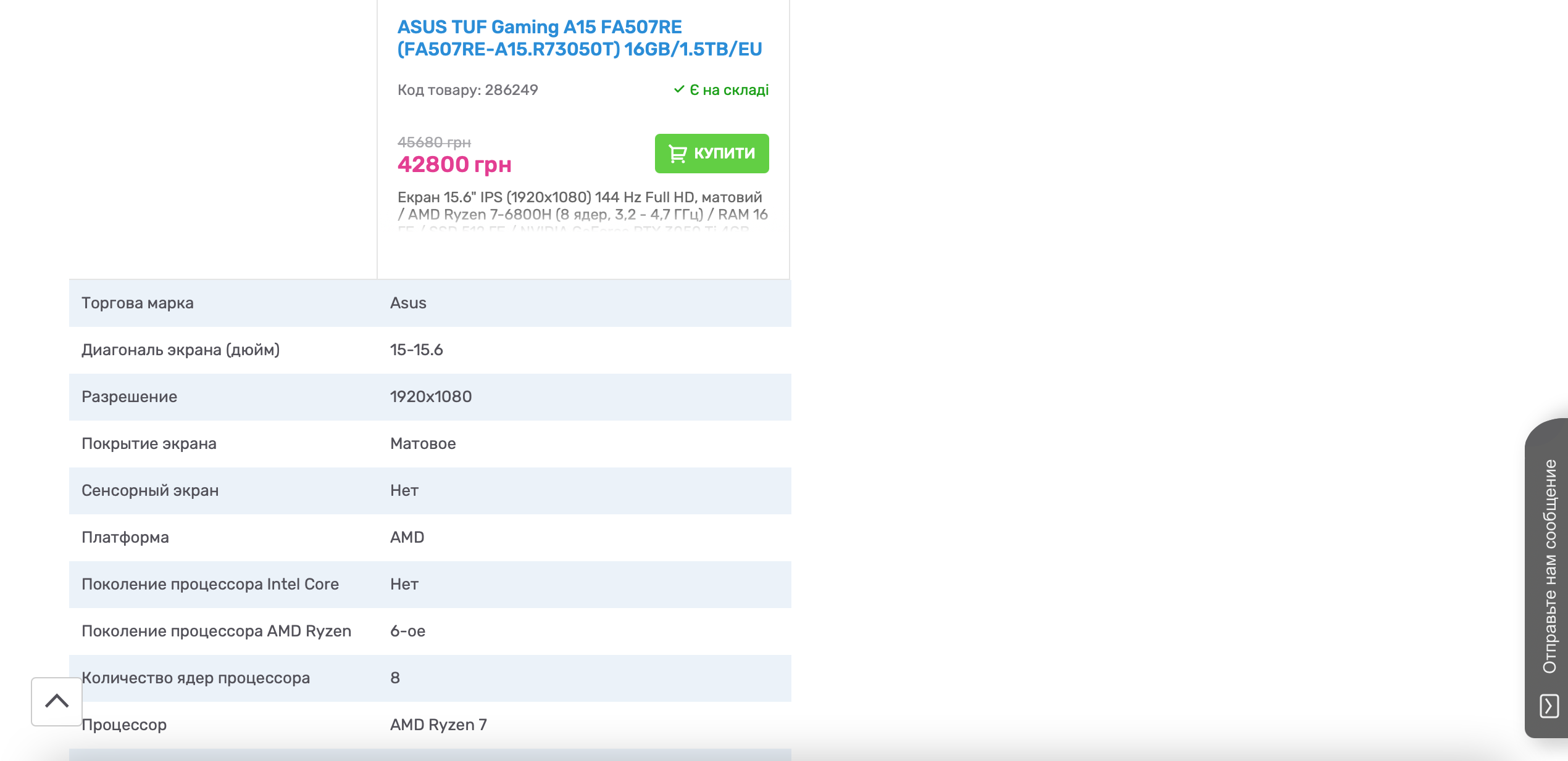 Ожидаемый результат: описание товара на украинском языке