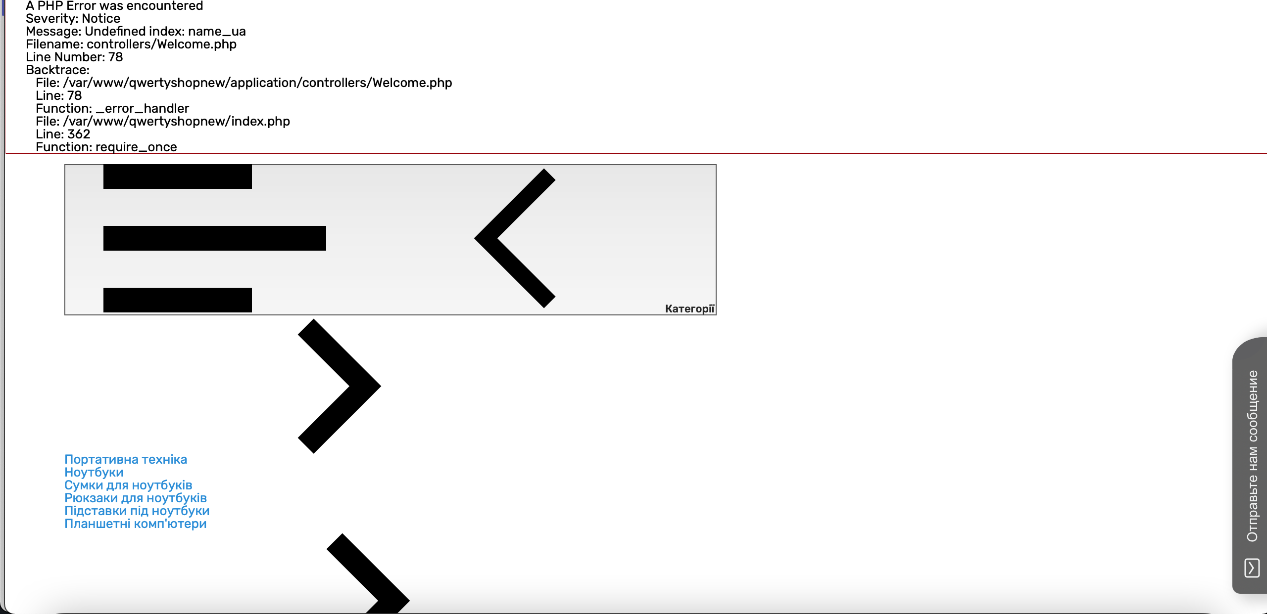 Ошибка сайта при нажатии на кнопку "Портативная техника" в каталоге товара HP