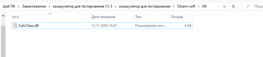 Очікуваний результат:Модуль AnalaizerClass.dll наявний в системній папці до проекту Калькулятор