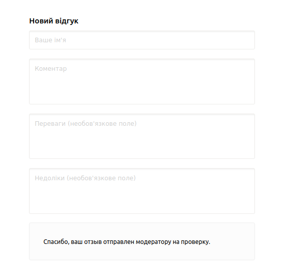 Відсутня валідація форми відгуків