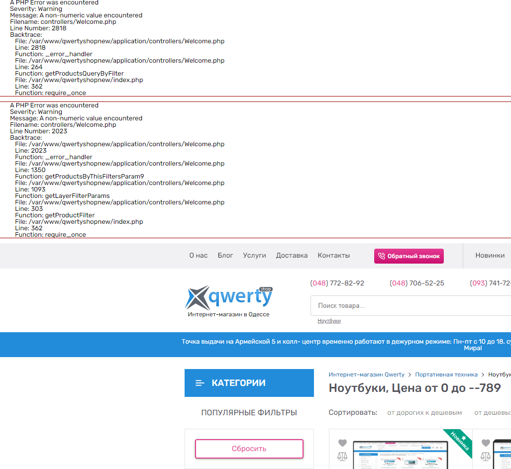Фактический результат: допускает неправильные значения, выводит ошбки сервера