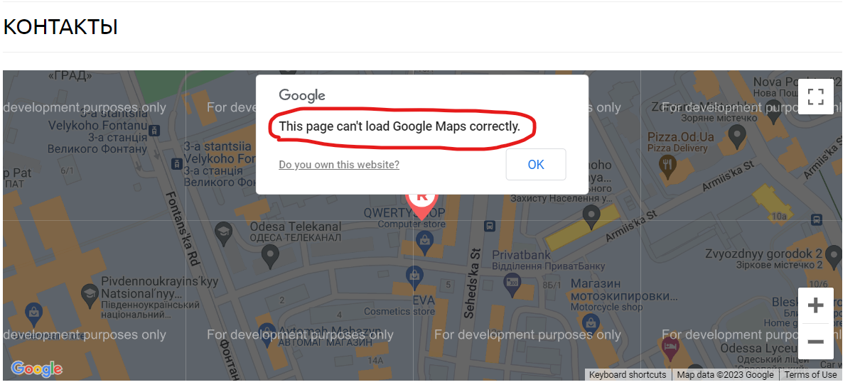 Отсутствие презентации GOOGLE MAPS в разделе КОНТАКТЫ