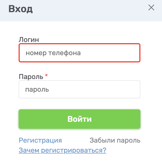 1) Нажать кнопку "Вход" на главной странице