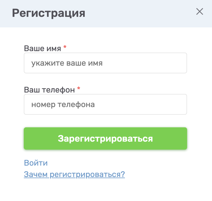 1) Нажать кнопку "Вход" на главной странице