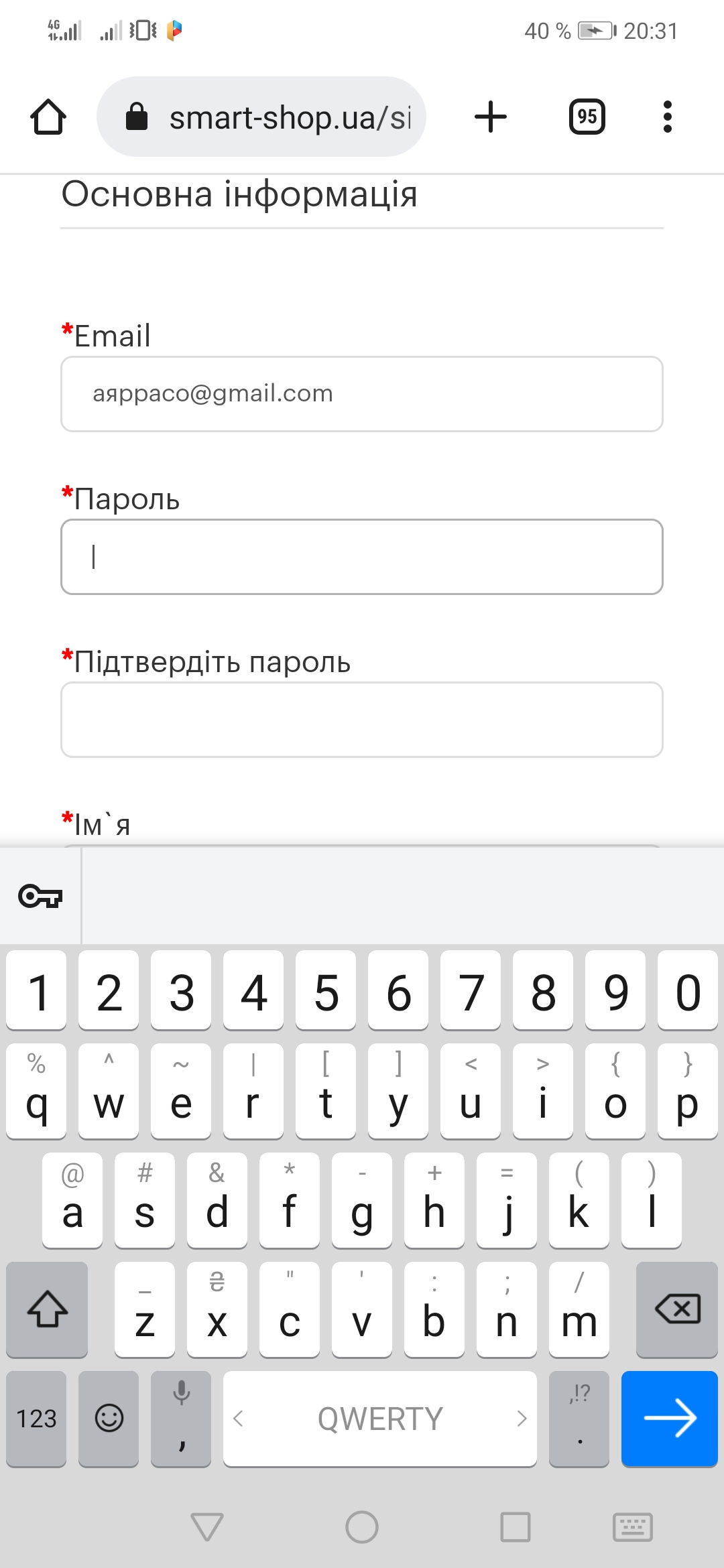 4. Вводим адрес Эл. Почты русскими буквами