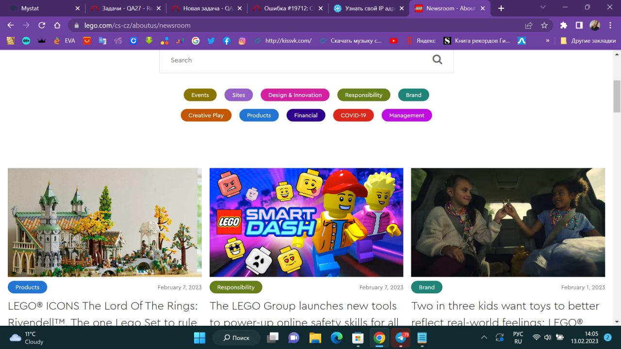 Ожидаемый результат: страница Novinky LEGO® на чешском языке