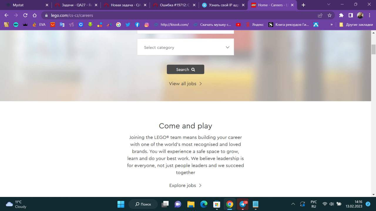 Ожидаемый результат: страница LEGO kariéra на чешском языке