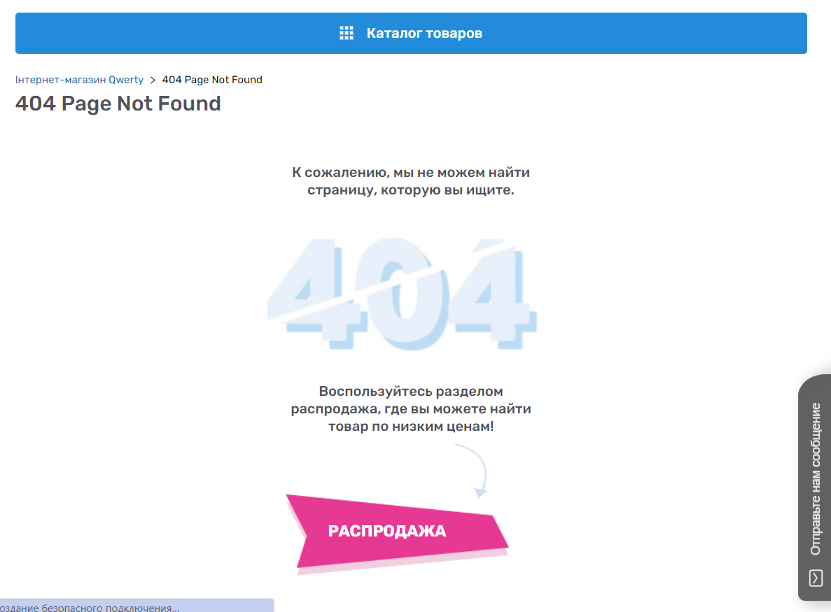 Ожидаемый результат : Отсутствие ошибки 404 в Разделе Распродажа
