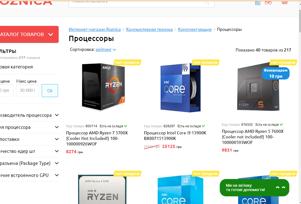 Відсутнє сортування по виробниках в товарі "Процесори"